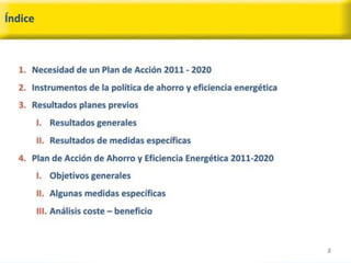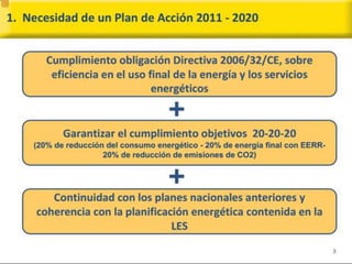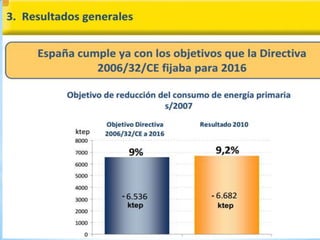 La Directiva establece un marco para mejorar la eficiencia energética en la UE y asegurar un objetivo de ahorro del 20% para 2020. Requiere que los estados miembros establezcan objetivos nacionales de eficiencia energética y estrategias para renovar edificios, mejorar medición del consumo y promover auditorías energéticas. También crea sistemas de obligaciones de eficiencia energética para distribuidores y minoristas de energía y promueve la eficiencia en calefacción, refrigeración y servicios energéticos