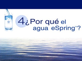 El agua es fundamental para la salud y el bienestar, ya que transporta nutrientes, regula la temperatura corporal y mejora la concentración. Es crucial consumir agua de buena calidad, ya que puede estar contaminada con diversas sustancias que afectan la salud. Existen varios métodos para obtener agua potable, y el sistema de filtración eSpring se destaca por su eficacia en eliminar contaminantes dañinos.