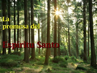 Este documento resume varios pasajes bíblicos que describen la promesa del Espíritu Santo. Jesús prometió enviar el Espíritu Santo para enseñar a sus discípulos después de su ascensión. El Espíritu Santo vendrá sobre los creyentes y les dará poder. Dios dará el Espíritu Santo a aquellos que se lo pidan. Jesús sopló sobre sus discípulos y les dijo que recibieran el Espíritu Santo.