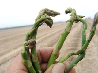 Este documento proporciona información sobre el cultivo de espárrago. Describe el origen, características, variedades, requerimientos edafoclimáticos, fenología, plagas y enfermedades del espárrago. También cubre aspectos de la poscosecha, comercio internacional y propiedades nutricionales del espárrago. El espárrago es un cultivo importante para la agroexportación peruana, especialmente las regiones de Libertad, Ancash, Lima e Ica.