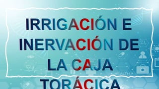 El documento describe la anatomía del tórax, incluyendo sus estructuras como el esternón, las costillas y las vértebras dorsales, así como sus dimensiones y tipos. Se detalla también la clasificación de las articulaciones torácicas y los músculos asociados al tórax, junto con su inervación y vascularización. Finalmente, menciona los nervios intercostales y su disposición en los espacios intercostales, así como el sistema arterial y venoso que irriga y drena la pared torácica.