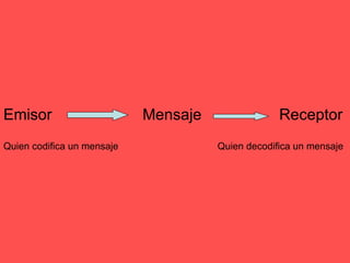 El documento describe los elementos clave de un esquema de comunicación, incluyendo el emisor, mensaje, receptor, código, canal, contexto y referente. Define al emisor como quien codifica un mensaje, al receptor como quien lo decodifica, y explica que el código une a los actores mediante convenciones sociales, mientras que el canal es el soporte por donde circula la información.