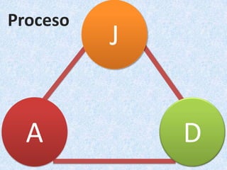 Un proceso siempre es un proceso. Tiene una estructura triangular entre juez, actor y demandado, y es un medio heterocompositivo de solución de litigios que expresa la soberanía del estado. Los procesos deben ser gratuitos y seguir un procedimiento lógico, jurídico, político y económico.