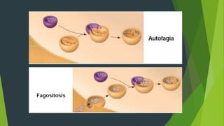 Este documento describe las características de las células eucariotas. Las células eucariotas se caracterizan por tener un núcleo rodeado por una membrana doble y organelos como las mitocondrias y cloroplastos delimitados por membranas. También presentan un sistema endomembranoso complejo que divide la célula en compartimentos funcionales como el retículo endoplasmático, aparato de Golgi, lisosomas y vacuolas.