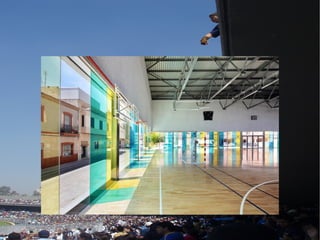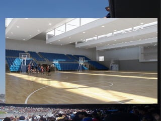 El documento habla sobre el Polideportivo La Bosca en Burriana. Contiene instalaciones deportivas como pistas de tenis, fútbol sala y baloncesto. El polideportivo ofrece varias opciones para practicar deporte a los residentes de la ciudad.