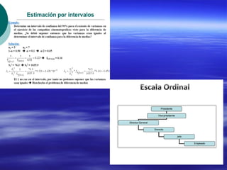 El documento describe diferentes tipos de variables estadísticas, como variables cualitativas y cuantitativas. También explica conceptos como población, muestra, parámetros y estadísticos. Finalmente, detalla las diferentes escalas de medición como nominal, ordinal, de intervalo y de razón.