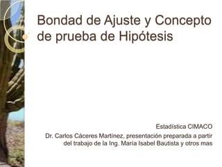 Este documento presenta los conceptos clave de las pruebas de hipótesis estadísticas, incluyendo (1) la definición de hipótesis nula e hipótesis alternativa, (2) la selección del nivel de significación, y (3) los cinco pasos del procedimiento de prueba de hipótesis - identificar la distribución muestral asociada, formular la regla de decisión, y tomar una decisión final de aceptar o rechazar la hipótesis nula. También proporciona un ejemplo numérico