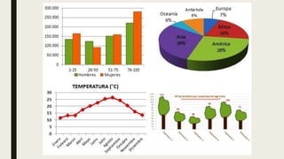 Este documento presenta los conceptos básicos de estadística descriptiva, incluyendo variables, tipos de datos, tablas de frecuencias y gráficos. Explica que la estadística es útil para la toma de decisiones en diversos campos como la medicina, ciencias sociales y los negocios. También define conceptos como variables cualitativas y cuantitativas, datos nominales, de intervalo y de razón, y métodos para organizar y resumir datos como tablas de frecuencias.