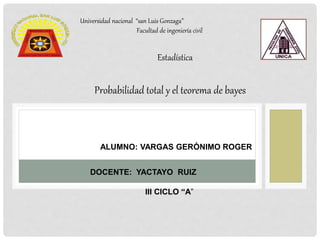Este documento presenta conceptos básicos de probabilidad como experimentos aleatorios, espacio muestral, sucesos aleatorios, definición clásica de probabilidad, propiedades de la probabilidad, operaciones con sucesos, probabilidad condicionada, probabilidades dependientes e independientes, tablas de contingencia, diagrama de árbol, teorema de la probabilidad total y teorema de Bayes. Incluye ejemplos y ejercicios resueltos para ilustrar los conceptos.
