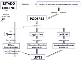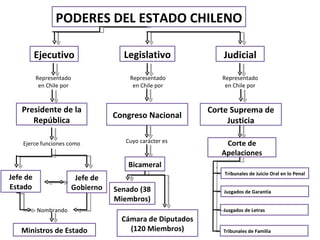 El estado chileno se compone de los órganos de gobierno que incluyen los poderes ejecutivo, legislativo y judicial, cada uno con funciones específicas en la administración del país. El poder ejecutivo es representado por el presidente, el legislativo por el Congreso Nacional y el judicial por la Corte Suprema, entre otros tribunales. Estos poderes trabajan en conjunto para asegurar el cumplimiento y la aplicación de las leyes en Chile.