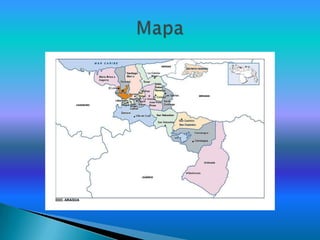 Este documento resume información sobre el estado Aragua en Venezuela. Ubica a Aragua entre los estados de Vargas, Miranda, Guárico y Carabobo, con una superficie de 7,014 km2. Describe que la capital es Maracay y que la población es de aproximadamente 1,735,981 habitantes. También menciona algunos sitios turísticos como Colonia Tovar y festividades tradicionales como la Feria de San José en marzo.
