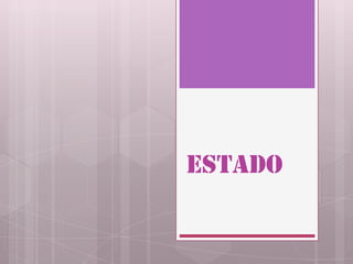 Este documento define el estado como una organización política que posee un territorio, población y poder estatal. Un estado tiene elementos como un territorio delimitado, una población estable que habita en él y está sometida a su poder jurídico, y órganos de gobierno que ejercen el poder de mando sobre la población. Además, se menciona que la nación se refiere al sentimiento que vincula a los individuos de acuerdo a factores como la raza, lengua o historia compartida.
