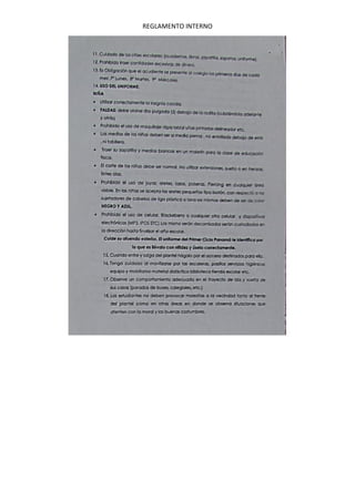 Este documento contiene información sobre el reglamento interno de una institución educativa, incluyendo decretos, formatos de citación de acudientes, cronogramas de audiencias disciplinarias, documentos sobre faltas administrativas y docentes, listas de asistencia y agendas de reuniones de coordinadores, horarios de reuniones de coordinación por departamento, y copias de planes semanales de diferentes departamentos de los años 2012 a 2017.