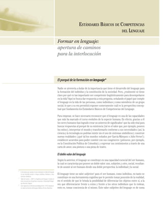 Este documento describe la importancia de desarrollar competencias lingüísticas. Explica que el lenguaje es esencial para los seres humanos tanto a nivel individual como social, ya que les permite apropiarse del mundo, comunicarse y establecer relaciones sociales. También destaca que el lenguaje incluye manifestaciones verbales y no verbales y que la formación en lenguaje busca desarrollar las capacidades de comprensión y producción.