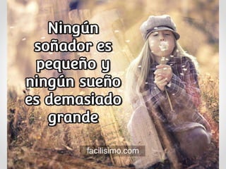 El documento ofrece orientación para organizar un proyecto de vida teniendo en cuenta factores externos como la familia, la sociedad, la economía y la política, así como factores personales. Además, sugiere que todos tenemos la capacidad de dejar un legado positivo que inspire a otros a perseguir sus propios sueños y objetivos.