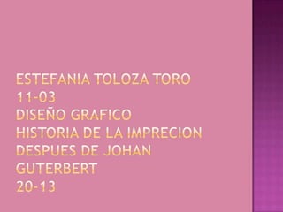 Este documento trata sobre diferentes técnicas de impresión a lo largo de la historia. Describe procesos como la litografía, la serigrafía, la flexografía y la impresión offset, entre otros. Explica los materiales y procesos involucrados en cada técnica. También analiza la evolución de la impresión desde los primeros métodos en Mesopotamia hasta las modernas impresoras de chorro de tinta.