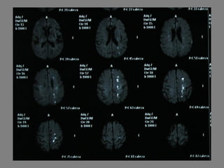 Un paciente de 75 años ingresó en el hospital debido a síntomas neurológicos como bradipsiquia, disartria y torpeza motora en las extremidades derechas que habían estado presentes durante las últimas 12 horas. Tenía antecedentes de fibrosis pulmonar e infección respiratoria reciente. El examen reveló disartria leve, paresia facial central derecha y claudicación en las extremidades derechas, lo que sugiere un posible ictus en el hemisferio izquierdo.