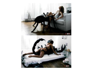 El documento habla sobre los elementos clave de una buena publicidad, incluyendo atraer la atención de manera inesperada y relevante, tener un estilo adecuado y ser legible, y hacer que la imagen interactúe con el mensaje en lugar de repetirlo. También menciona diferentes modos de expresión y niveles de competencia que una publicidad debe considerar.