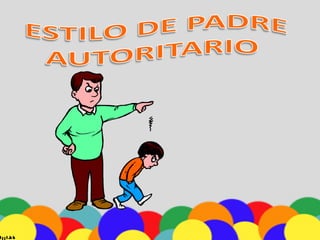 Este documento describe a los padres autoritarios, que siempre tratan de estar en control y ejercer control sobre los niños a través de reglas estrictas sin demostrar mucho afecto. Las características incluyen imponer normas sin discusión, castigar conductas sin explicación y tener bajos niveles de expresión de afecto.