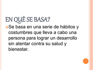 Un estilo de vida saludable se basa en hábitos como evitar el estrés, comer de forma saludable, no fumar o beber en exceso. Realizar actividad física regularmente mejora la capacidad física y mental, aumenta las defensas del cuerpo, ayuda a liberar el estrés y proporciona una sensación de descanso y bienestar.