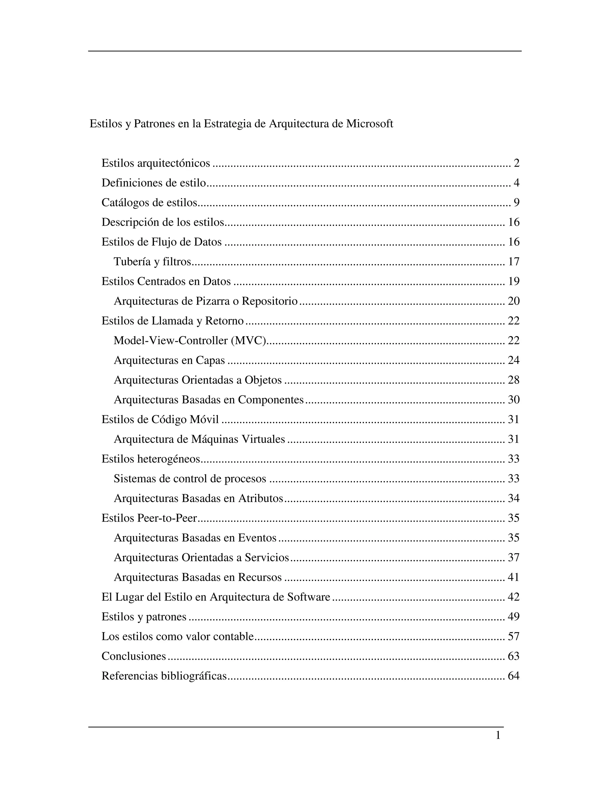 Este documento describe los diferentes estilos arquitectónicos y su relación con los patrones de diseño. Define los estilos como formas recurrentes de configurar los componentes de un sistema y su relación, y discute varios estilos como tubería y filtros, modelo-vista-controlador, arquitecturas en capas y orientadas a servicios. También analiza cómo los estilos se relacionan con los patrones de diseño y cómo proveen un marco conceptual para la arquitectura de software.