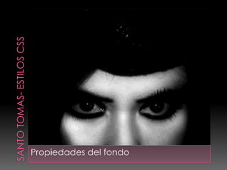Este documento describe las propiedades CSS relacionadas con los estilos de fondo, incluyendo background-color para establecer el color de fondo, background-image para definir una imagen de fondo, background-repeat para controlar la repetición de la imagen, background-attachment para fijar la imagen de fondo, y background-position para establecer la posición de inicio del fondo. También cubre el uso abreviado de la propiedad background para aplicar varias propiedades de fondo a la vez.
