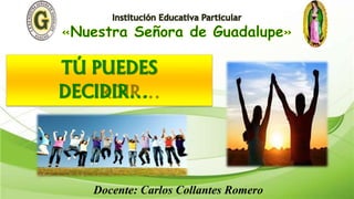 El documento describe los estilos de vida saludables y cómo afectan las dimensiones física, social, psicológica y espiritual de una persona. Se define el estilo de vida como los comportamientos cotidianos y se explica que un estilo de vida saludable promueve el bienestar físico, mental, emocional y espiritual a través de una alimentación y descanso adecuados, relaciones interpersonales positivas, el manejo saludable de las emociones, y una actitud de respeto hacia uno mismo y los demás.