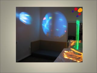 El documento describe las normas y sugerencias para el uso de un aula de estimulación multisensorial. El objetivo es estimular todos los sentidos de niños con deficiencias para mejorar su desarrollo en áreas como la integración sensorial, el movimiento y la comunicación. Se explican las pautas para el uso de varios aparatos como colchones de agua, paneles táctiles y piscinas de bolas para estimular la visión, el tacto y el equilibrio de forma individualizada.
