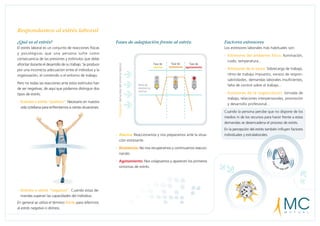 El documento habla sobre el estrés laboral, sus causas y consecuencias. A nivel organizacional, es necesario organizar bien el tiempo de trabajo, proporcionar descripciones claras de las tareas, y establecer buenas comunicaciones. A nivel individual, los trabajadores deben planificar su trabajo, mantener hábitos saludables y aprender a desconectar. El estrés puede causar problemas de salud en los trabajadores y aumentar el absentismo en las empresas. Los factores estresores comunes incluyen sobrecarga de trabajo y malas relaciones interpersonales.