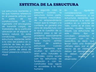 Este documento describe la estética, función y formas generales de las estructuras. Explica que las estructuras tienen la función de soportar cargas como el peso propio, cargas de uso y acciones externas, y deben cumplir con equilibrio, estabilidad y resistencia. También cubre las consideraciones estéticas de las estructuras visibles. Finalmente, resume las formas comunes de estructuras como vigas, pilares, arcos, pórticos y cerchas.