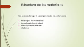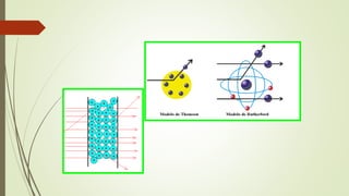 El documento describe la estructura atómica desde diferentes modelos históricos hasta la teoría moderna. Explica que un átomo está formado por un núcleo central positivo rodeado de electrones, y describe los números cuánticos que definen la configuración electrónica. También define conceptos como isótopos, iones y masa atómica.