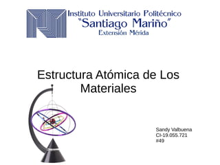 El documento describe cómo la estructura atómica afecta las propiedades de los materiales. Explica que la composición y estructura de un material influyen en sus propiedades y comportamiento, y que las propiedades de los materiales pueden controlarse mediante el control de su estructura y composición. También describe los diferentes tipos de enlaces atómicos como iónicos, metálicos y covalentes, y cómo estos afectan la clasificación y propiedades de los materiales.