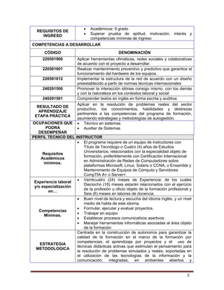 Este documento presenta la información general del programa técnico en sistemas. El programa dura 12 meses y busca brindar capacitación en mantenimiento de equipos de cómputo e implementación de redes de datos para mejorar la productividad del sector productivo. El programa requiere estudiantes con grado 9 y ofrece capacitación en herramientas ofimáticas, redes y mantenimiento de hardware.