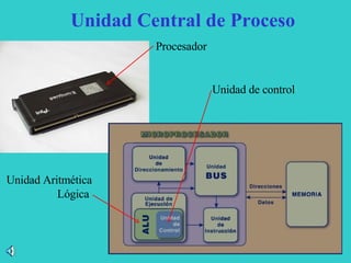 El documento describe las principales partes de una computadora central incluyendo la unidad central de proceso, la memoria principal, las unidades de entrada y salida, y las unidades de memoria masiva. También clasifica los diferentes tipos de computadoras como supercomputadoras, macrocomputadoras, minicomputadoras, microcomputadoras y computadoras de mano.