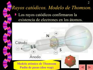 El documento resume los principales conceptos y modelos de la estructura atómica, incluyendo los rayos catódicos y el modelo de Thomson, el experimento y modelo de Rutherford, la radiación electromagnética y el espectro electromagnético, los espectros atómicos y las series espectrales, la hipótesis de Planck y la cuantización de la energía, el efecto fotoeléctrico y la teoría corpuscular de Einstein, el modelo atómico de Bohr, los principios básicos de la mecánica cu