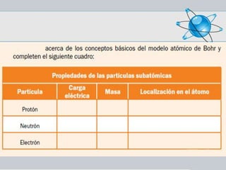 El documento resume la evolución del modelo atómico desde Demócrito hasta el modelo actual. Demócrito fue el primero en postular la existencia de los átomos en el siglo V a.C. Posteriormente, Thomson introdujo la idea de que los átomos estaban formados por electrones, protones y neutrones. Rutherford propuso que los átomos tenían un núcleo central con electrones orbitando alrededor. Bohr describió el átomo de hidrógeno con electrones en órbitas definidas. El modelo actual abandona esta idea y describe a los electron