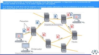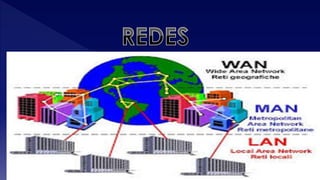 Este documento describe las diferentes redes de computadoras, incluyendo LAN, MAN, WAN e Internet. Explica cómo las redes LAN se usan para conectar computadoras dentro de una oficina o escuela, mientras que las WAN se extienden a distancias más largas. También describe los protocolos como TCP/IP que permiten el intercambio de información entre computadoras a través de estas redes.