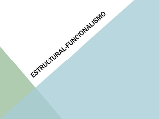El documento describe la perspectiva sociológica funcionalista-estructuralista, la cual se enfoca en descubrir la estructura y función de las instituciones sociales para mantener el equilibrio de la sociedad. Explica que los principales representantes de esta perspectiva fueron Émile Durkheim, Bronislaw Malinowski y Alfred Reginald, y que analiza cómo el estatus y rol de los individuos determinan su conducta dentro de la sociedad.