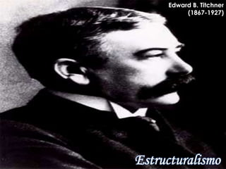 Edward B. Titchner llevó el sistema psicológico de Wundt a los Estados Unidos y fundó la escuela de pensamiento llamada Estructuralismo. Estudió la experiencia consciente usando métodos de observación, experimentación y medición, y propuso agregar atributos como claridad y duración para distinguir elementos mentales. William James fue un precursor importante de la nueva psicología científica que estudió cómo funciona la mente y los logros de los procesos mentales a través de métodos experimentales.
