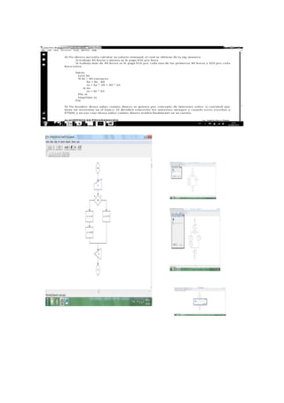 El documento presenta un taller sobre estructuras algorítmicas condicionales. La parte 1 incluye dos problemas que involucran determinar el mayor de dos números y hallar el triángulo con mayor área. La parte 2 cubre estructuras simples mientras que la parte 3 se enfoca en estructuras compuestas.