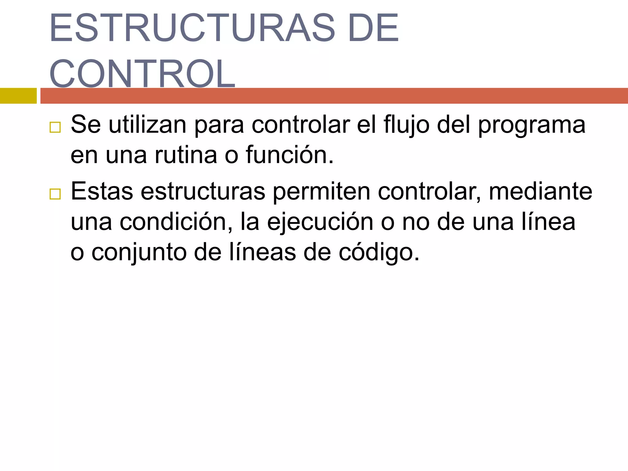 Este documento describe las principales estructuras de control en Visual Basic.NET, incluyendo IF-THEN-ELSE, WHILE-WEND, SELECT-CASE y FOR-NEXT. Estas estructuras permiten controlar el flujo de un programa mediante condiciones para ejecutar código de manera condicional o repetitiva.
