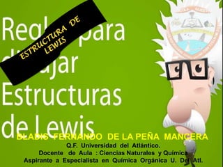 Este documento presenta una introducción a las estructuras de Lewis. Explica qué son las estructuras de Lewis, los símbolos utilizados y cómo diseñarlas siguiendo reglas como determinar el átomo central, calcular los electrones compartidos y distribuirlos para cumplir la regla del octeto. También cubre excepciones a la teoría de Lewis y conceptos como electronegatividad, tipos de enlaces, iones y números de oxidación. El objetivo es proporcionar una guía básica para representar enlaces químicos mediante e
