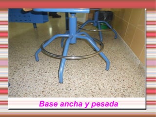 El documento describe las estructuras del Instituto Juan Antonio Carrillo Salcedo, incluyendo una base ancha y pesada que soporta pilares, vigas, perfiles y soportes en forma de V formando triangulaciones, así como escuadras y anclajes que proporcionan peso y estabilidad a la estructura.