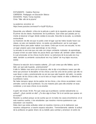 1. La película narra la historia de una maestra llamada Stacey Bess que acepta su primer trabajo docente en una escuela en condiciones precarias.