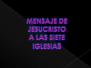 El documento resume las cartas que Juan escribió a las 7 iglesias de Asia Menor mencionadas en Apocalipsis. Cada carta contiene una descripción de Cristo, elogios a la iglesia, críticas a problemas que enfrentaban, advertencias y promesas. Las cartas brindan perspectivas históricas y proféticas sobre cada iglesia y su llamado a la fidelidad a pesar de las persecuciones.