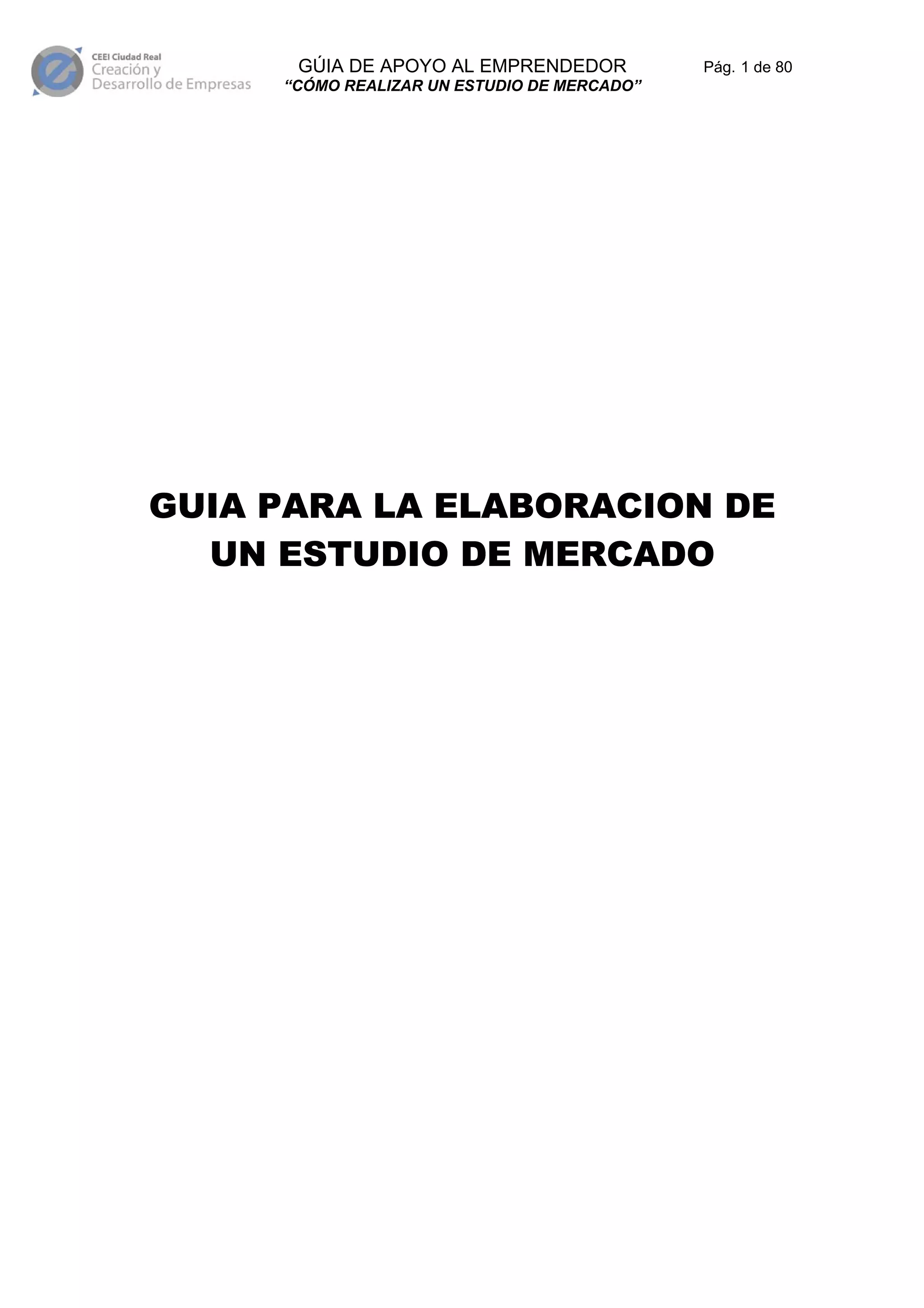 Este documento proporciona una guía para realizar un estudio de mercado. Explica qué es un estudio de mercado, su utilidad y cómo se elabora. Define conceptos clave como público objetivo, segmentación del mercado y variables de segmentación. Detalla las diferentes etapas para realizar un estudio de mercado como definir el problema, analizar la situación actual, realizar un análisis DAFO y definir objetivos. Finalmente, describe diferentes técnicas para la recopilación de datos como encuestas y entrevistas.