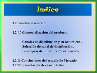 El documento presenta un estudio de mercado sobre la comercialización de mermelada, abordando aspectos como los canales de distribución, la demanda, y la evaluación de la factibilidad económica para establecer una empresa productora. Se analizan datos sobre el consumo de mermelada y se proyectan tendencias optimistas y pesimistas en oferta y demanda. Finalmente, se concluye con recomendaciones sobre estrategias de comercialización y posicionamiento en el mercado.