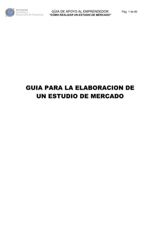 Este documento proporciona una guía para realizar un estudio de mercado. Explica qué es un estudio de mercado, su utilidad para diferentes fases del ciclo de vida de un producto y de una empresa. También describe los conceptos clave como público objetivo, segmentación del mercado y variables de segmentación. Finalmente, detalla los pasos para realizar un estudio de mercado y las técnicas más comunes para recopilar información primaria y secundaria.