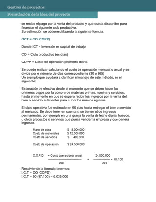 El documento describe los componentes clave de un estudio financiero de un proyecto, incluyendo la estimación de costos, ingresos, inversiones iniciales, capital de trabajo, estados financieros proyectados, y fuentes de financiamiento. El objetivo del estudio financiero es determinar la viabilidad económica del proyecto evaluando sus flujos de efectivo proyectados.