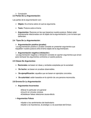 Este documento define los diferentes tipos de textos y sus características. Explica que los textos pueden ser argumentativos u expositivos. Los textos argumentativos intentan persuadir o convencer, mientras que los textos expositivos buscan transmitir información de manera objetiva. También describe las diferentes partes y estructuras que pueden tener diferentes tipos de textos como noticias, informes, contratos y más.